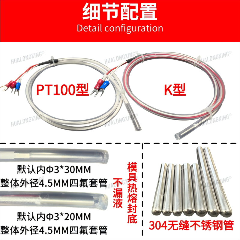 铁氟龙热电阻K型热电偶四氟感温线传感器探头防水防腐耐酸碱